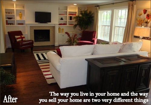 Now, let’s walk through the front door and tackle the inside, one room at a time. Keeping in mind that we have a couple of goals in mind. The first to remove as much of YOU as possible. This will allow us to attain our second goal: allowing the buyers to see THEMSELVES there.